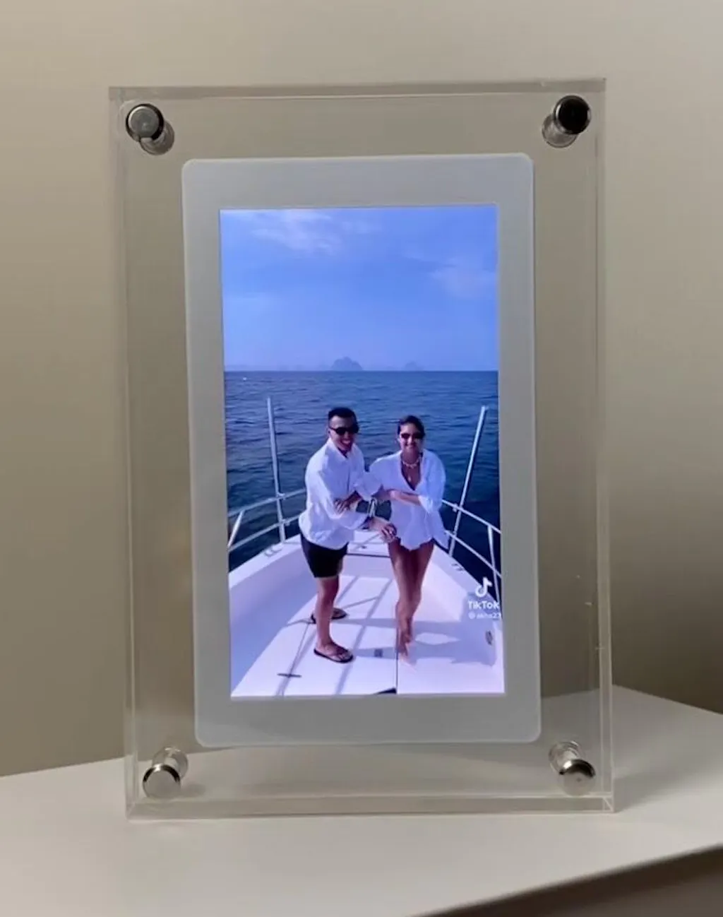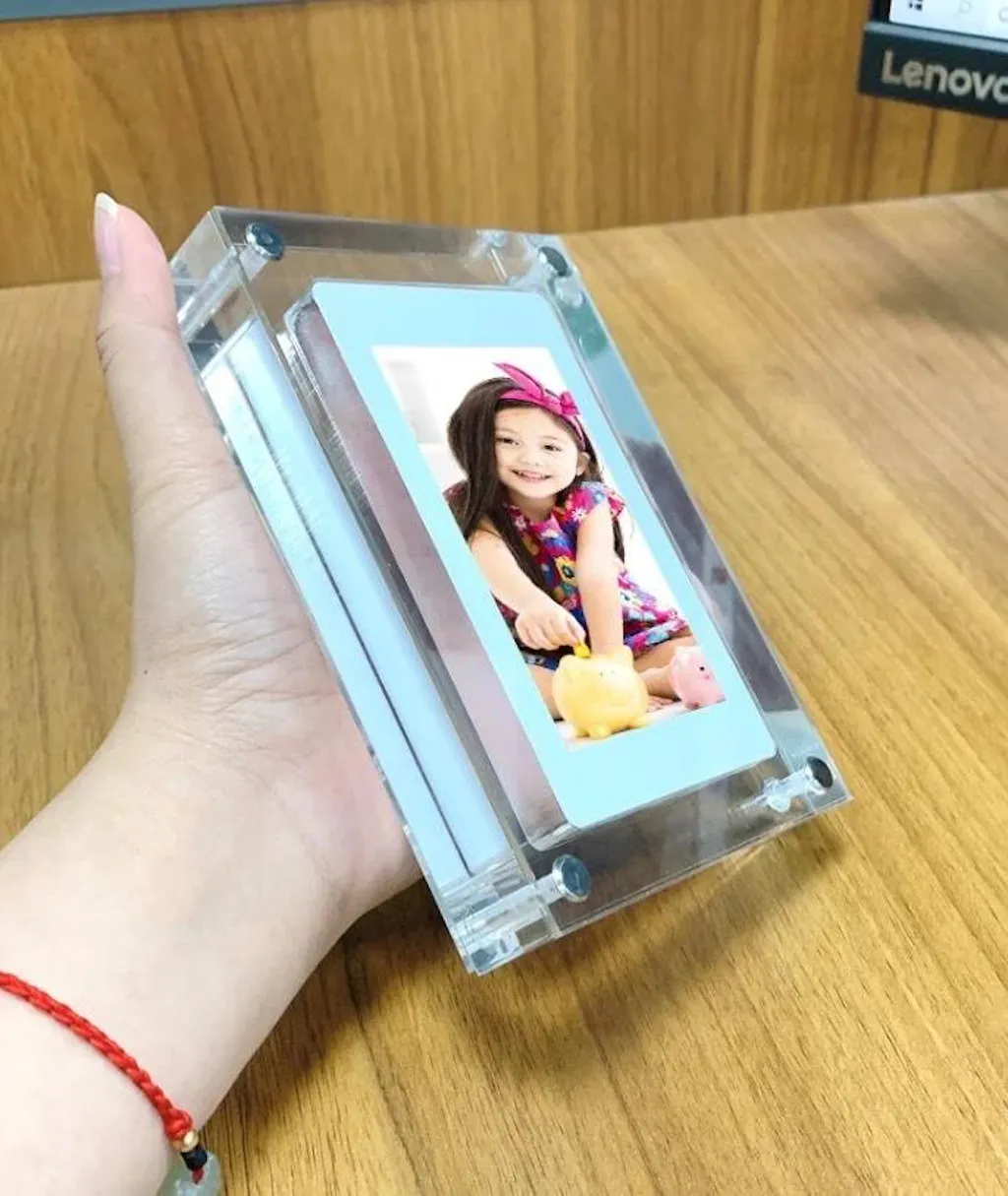 A gorgeous acrylic frame with an HD LCD screen display that allows you to infinitely loop the most precious memories that you captured via video/pictures.